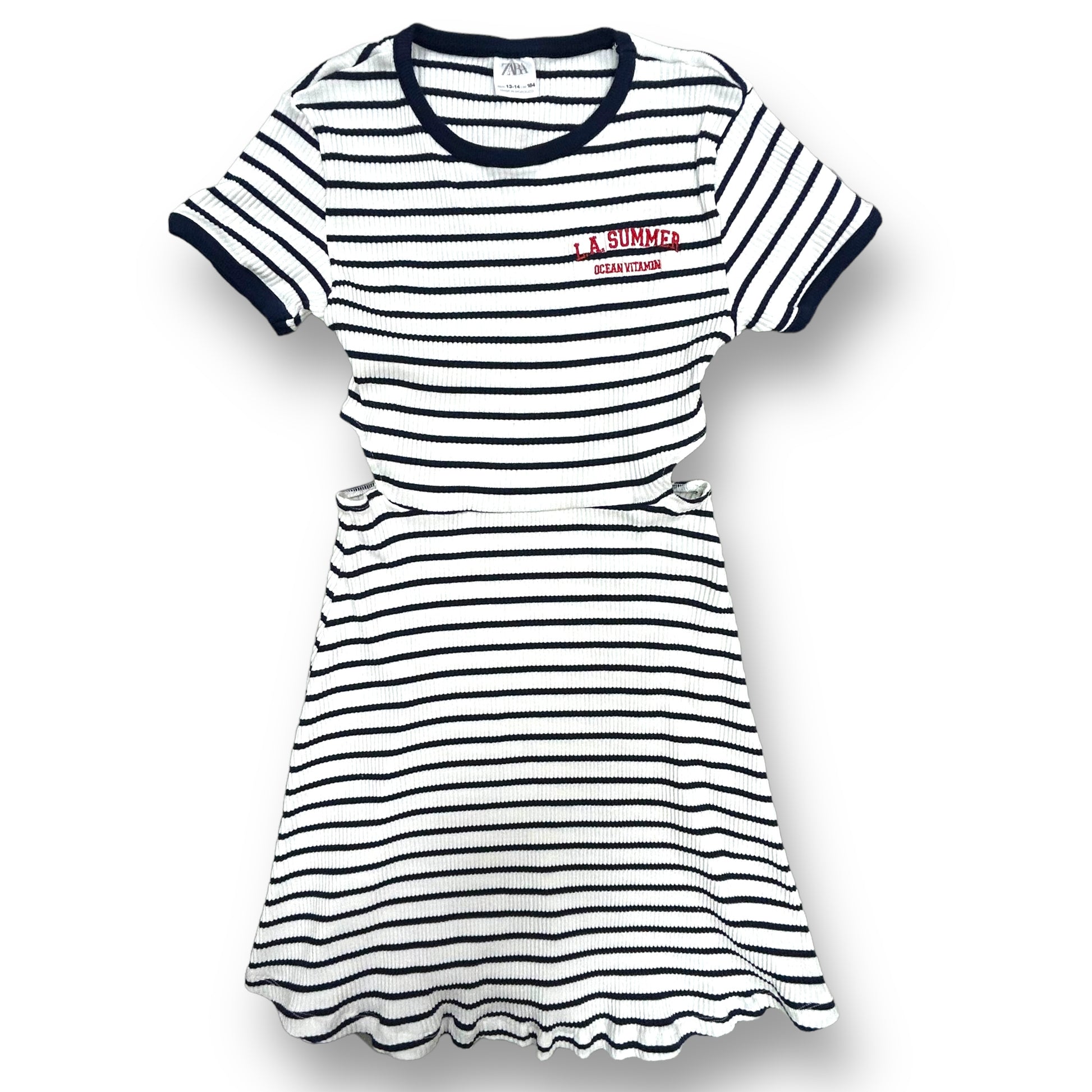 Zara Girls Size 14 Youth Navy & White Ribbed Short Sleeve Dress