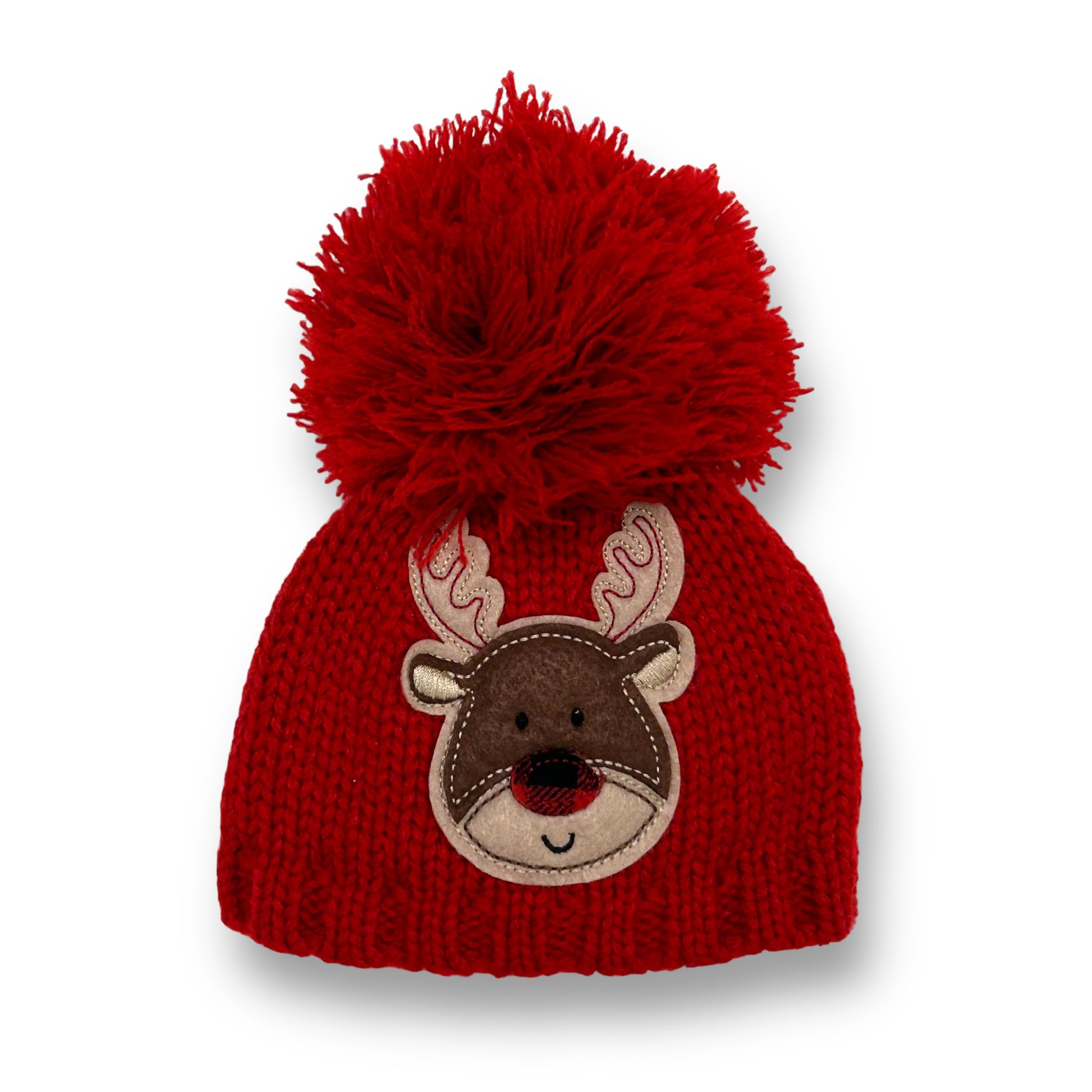 Baby Boy Knit Beanie Size 0-6 Months Red Reindeer Toboggan Christmas Hat