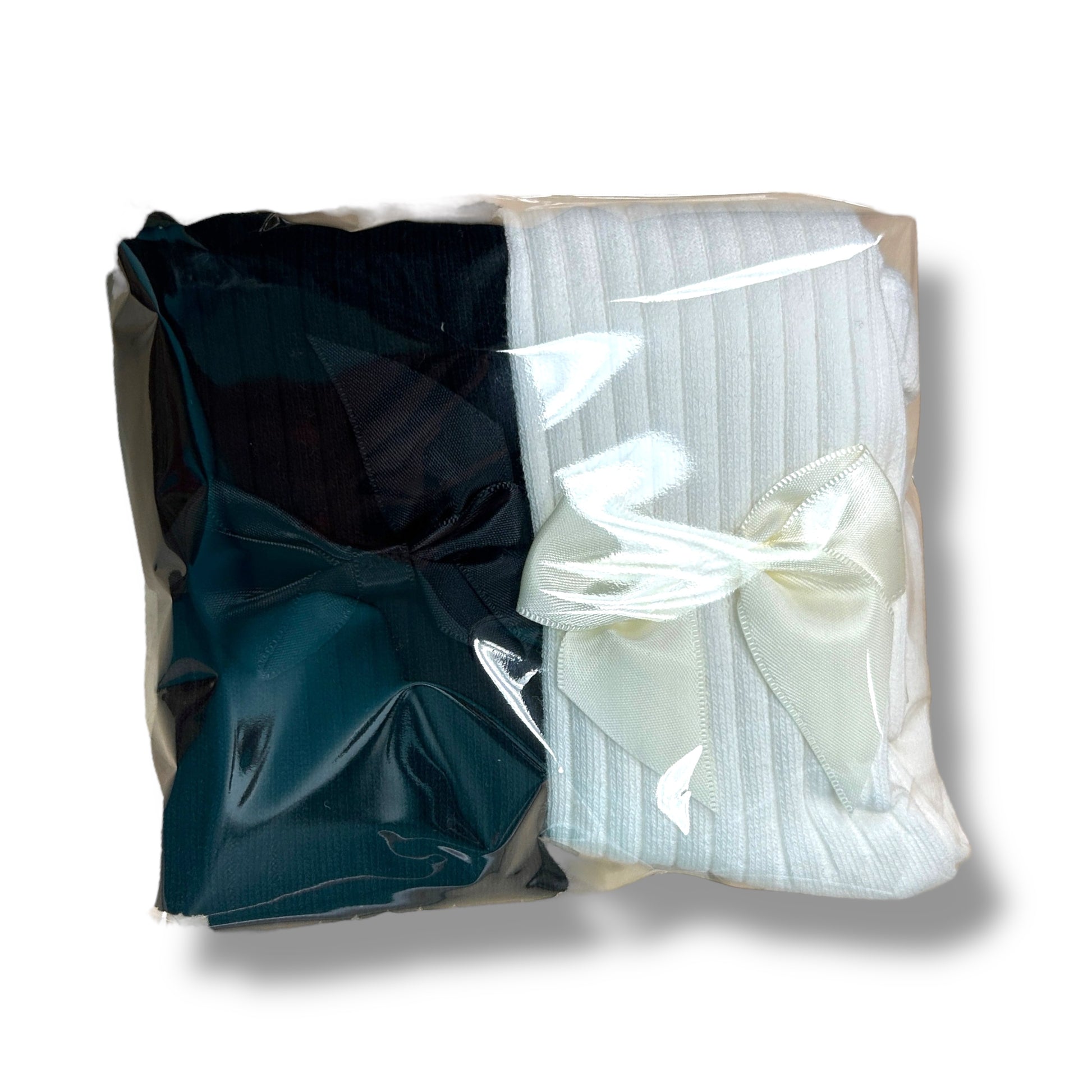 NEW! Baby Girl Tights Size 0-6 Months 2-Pack Black and White Ribbed Cotton