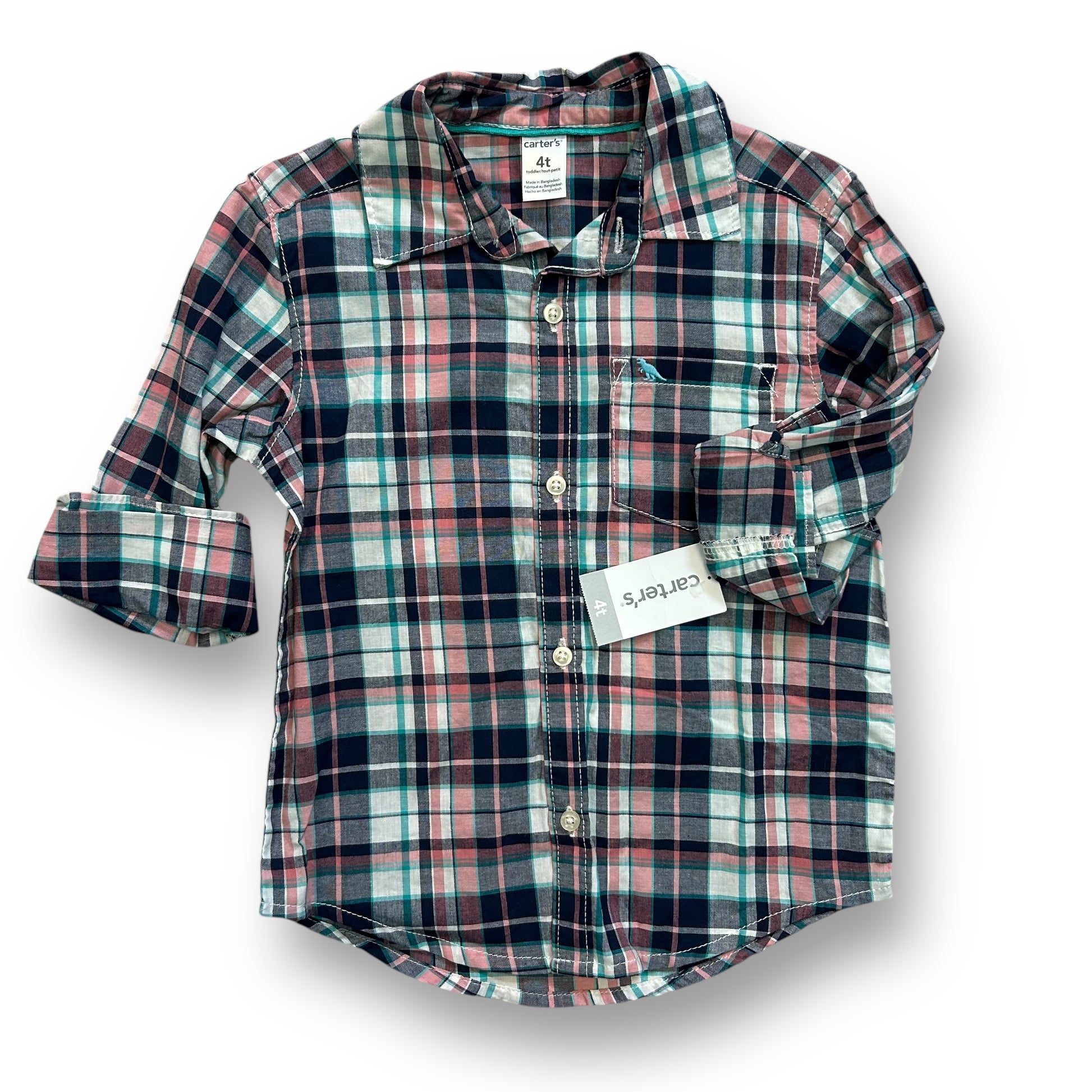 NEW! Carter's Boys Size 4T Long Sleeve Plaid Button Down Shirt