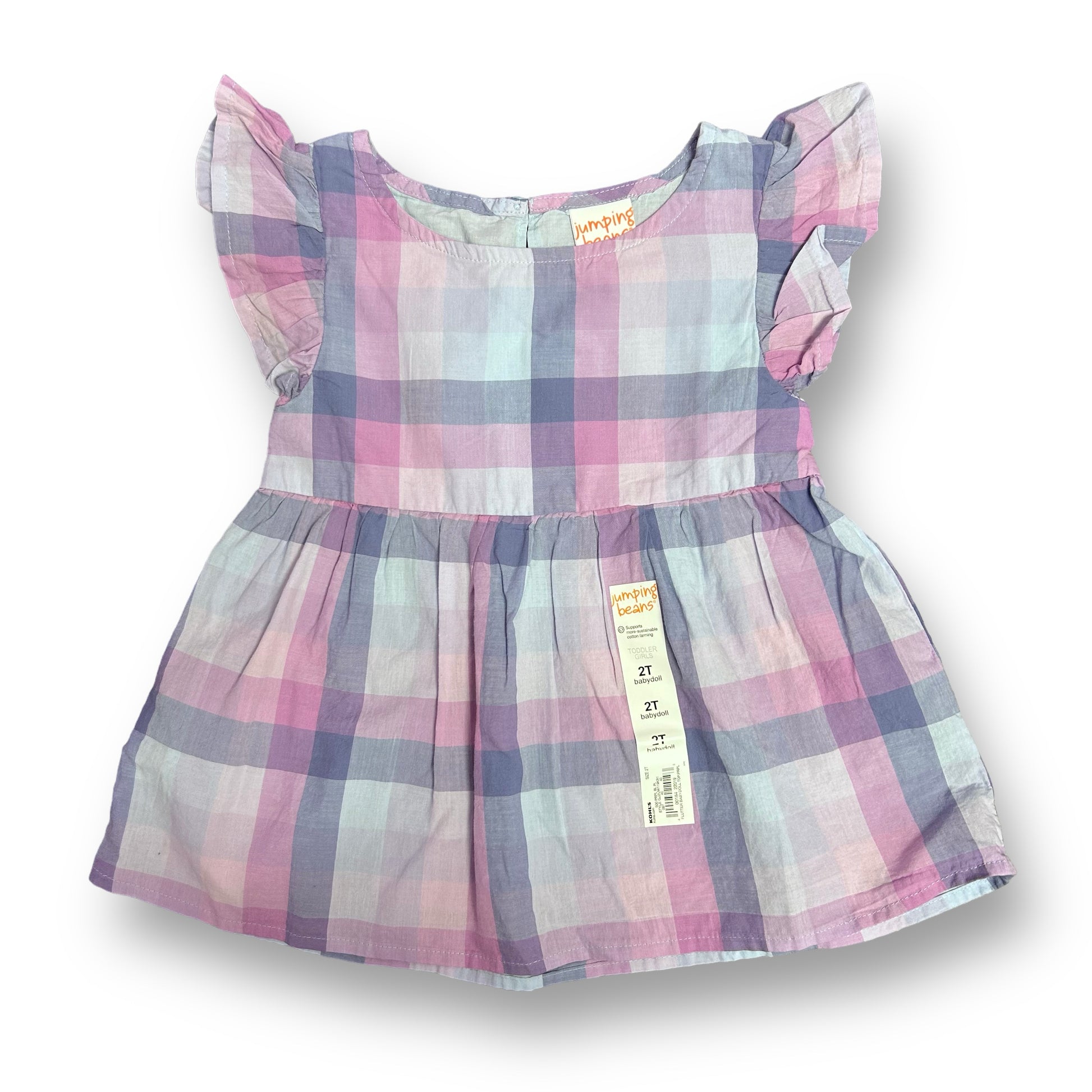 NEW! Girls Size 2T Purple Plaid Flutter Sleeve Babydoll Blouse