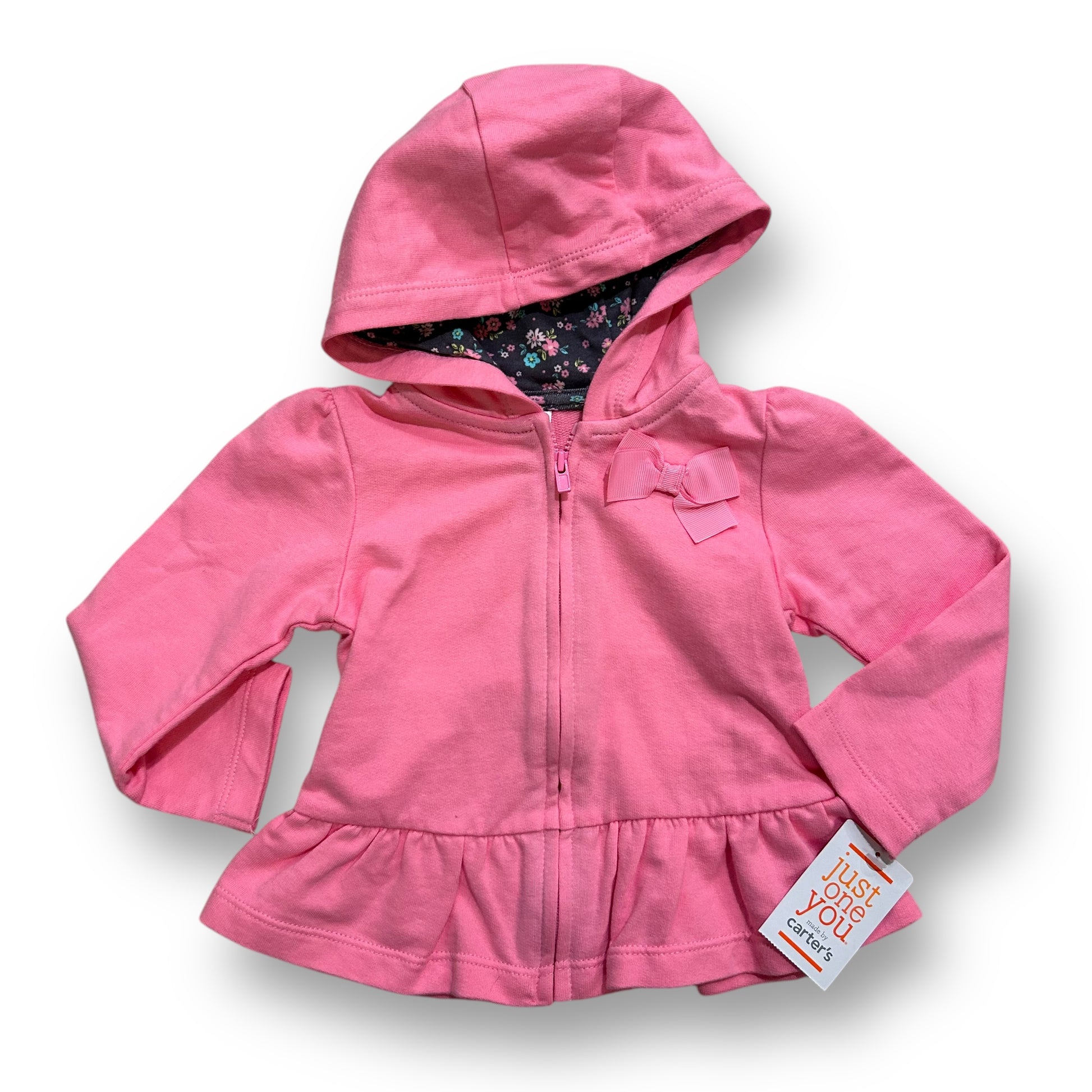 NEW! Baby Girl Size 12 Months Hoodie Pink Full Zip Sweatshirt with Ruffles