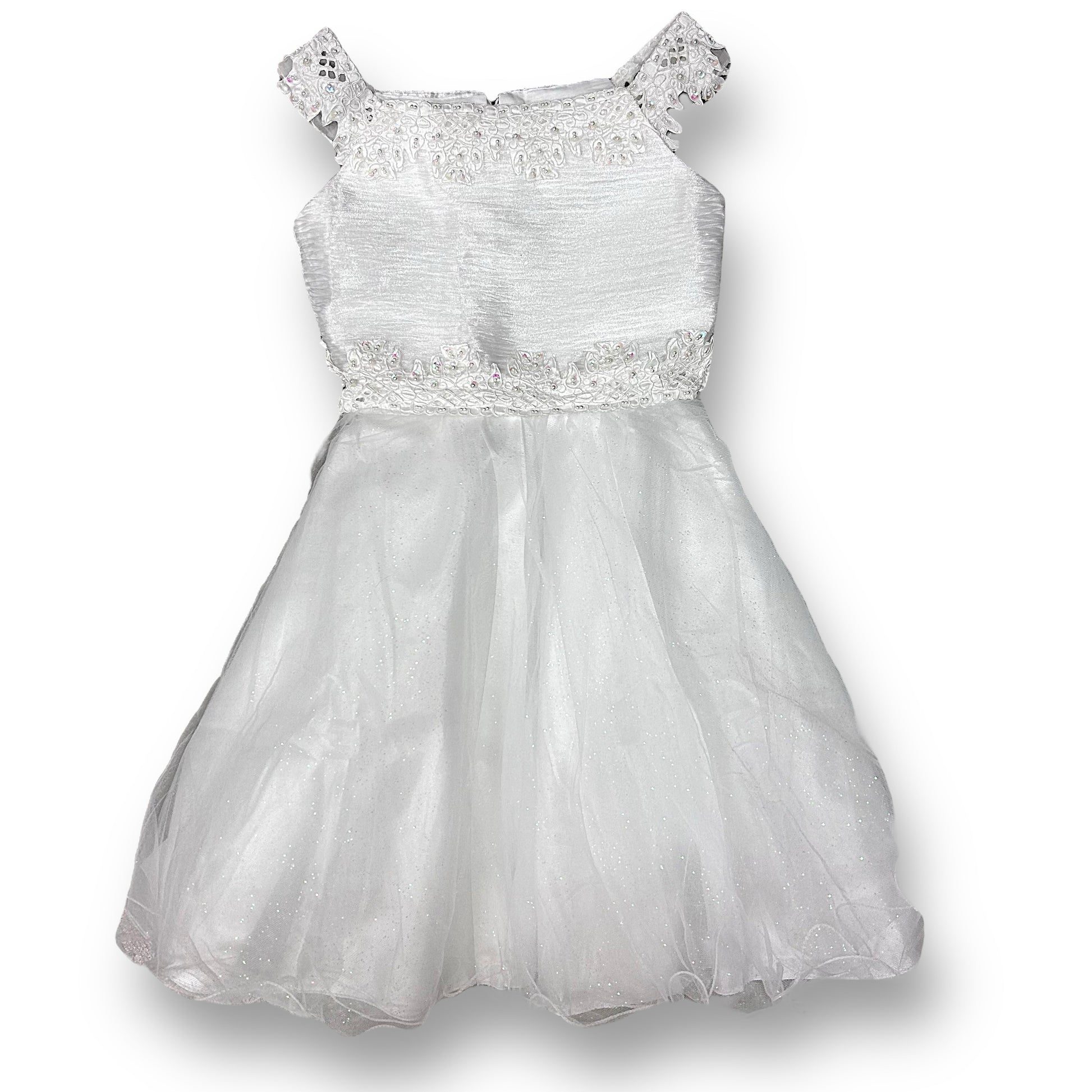 NEW! Girls Size 6/7 Flower Girl Dress Embellished with Beads, Ribbon, and Tulle