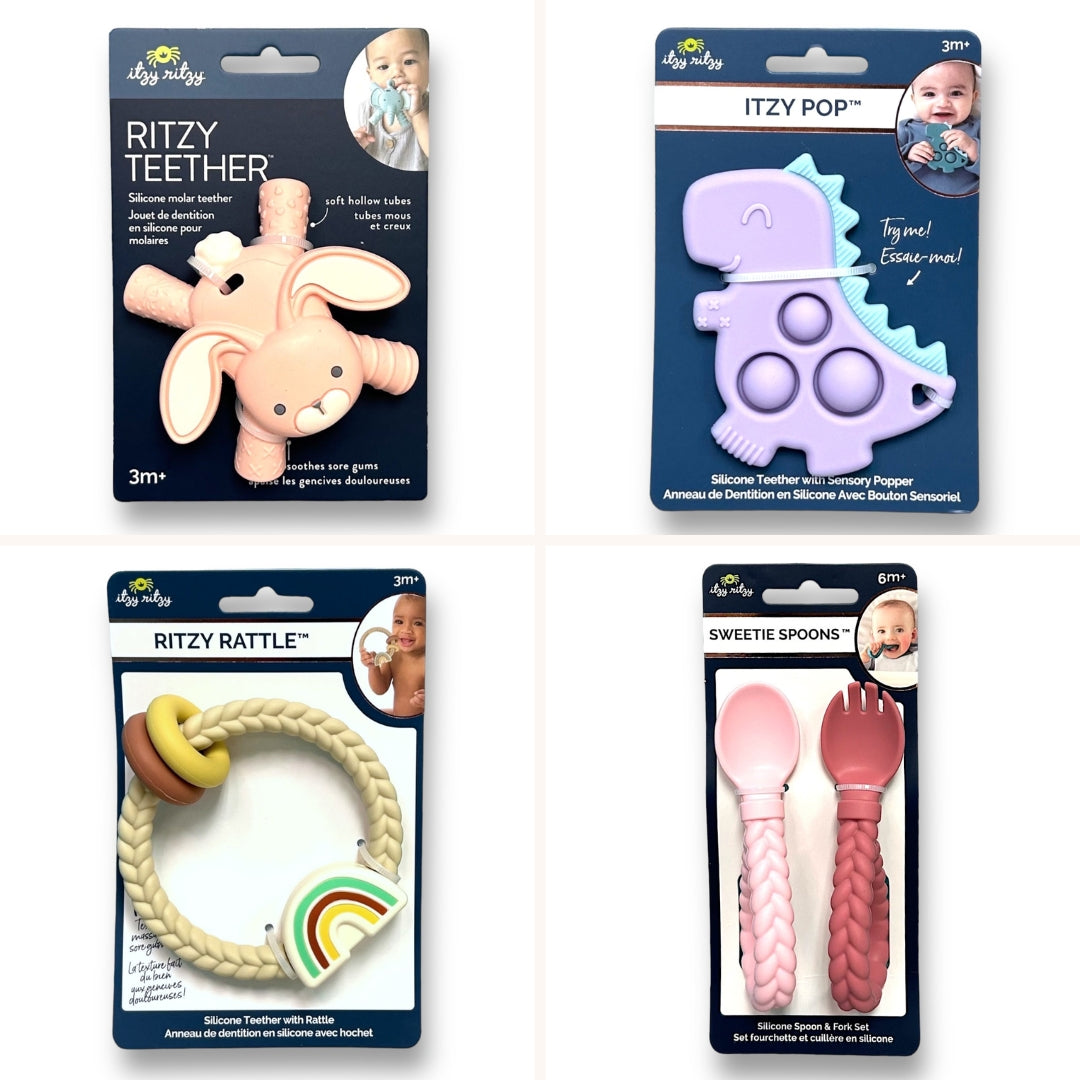 NEW! Itzy Ritzy 4-Pack BPA Free Baby Spoon, Fork, Teethers, and Rattle