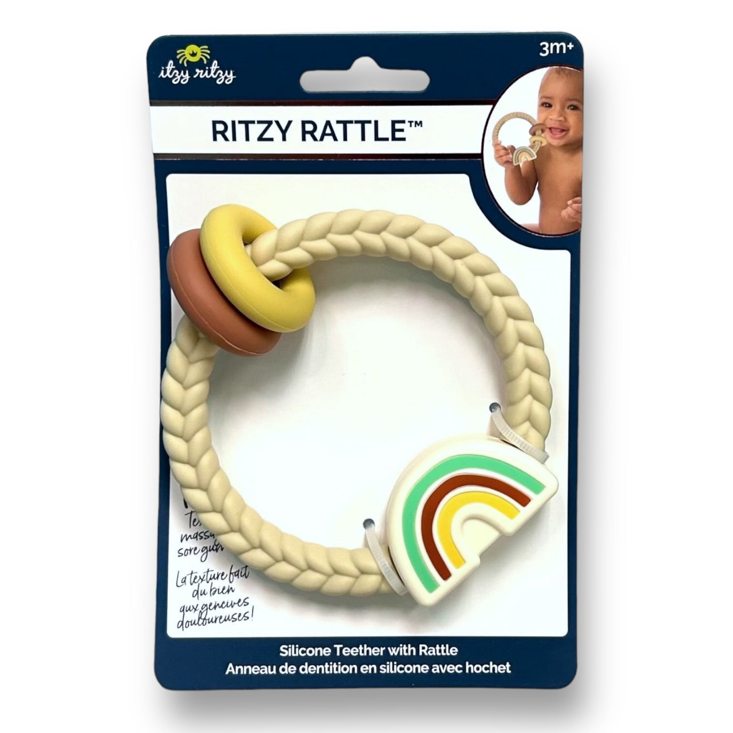 - Itzy Ritzy Neutral Rainbow Silicone BPA Free Baby Teether Rattle