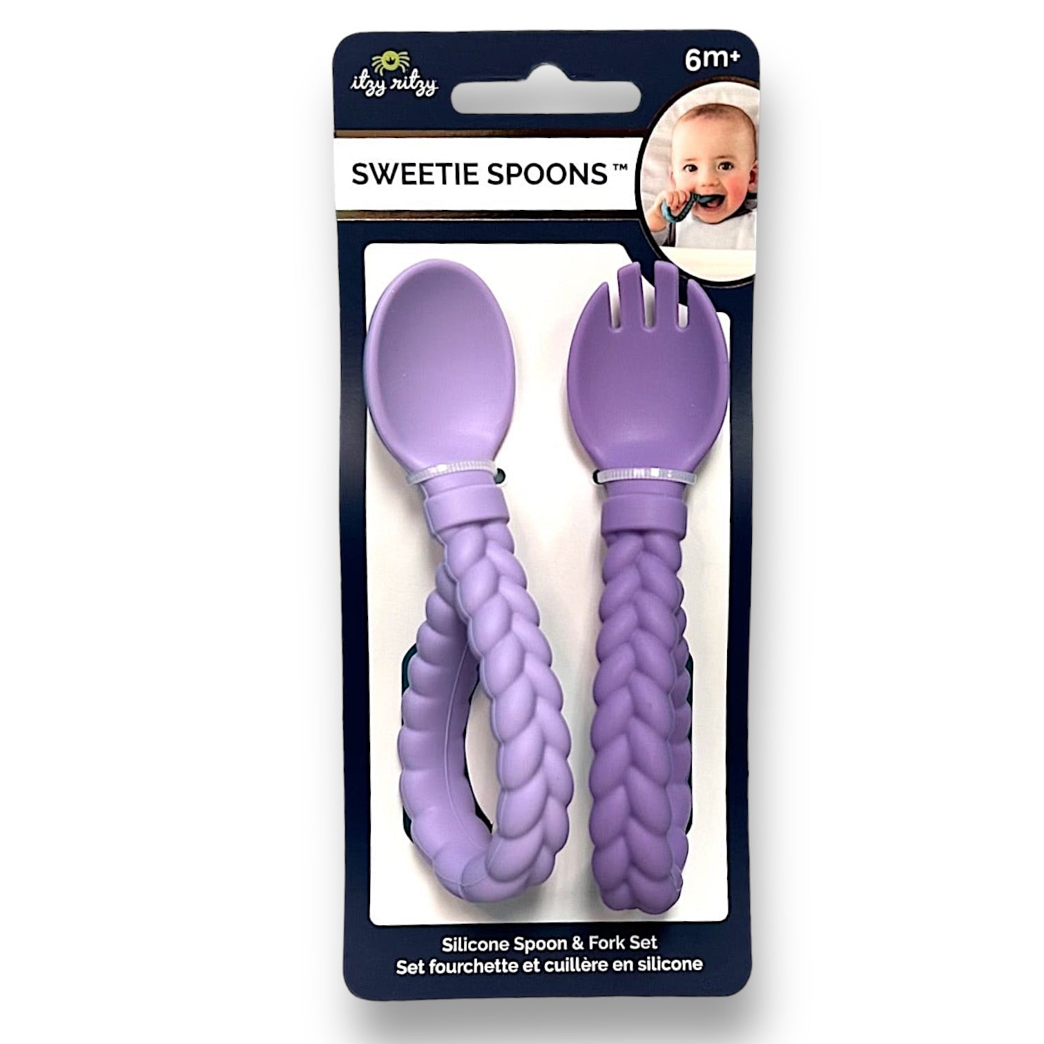 NEW! Itzy Ritzy Sweetie Purple Silicone BPA Free Baby Spoon and Fork Set