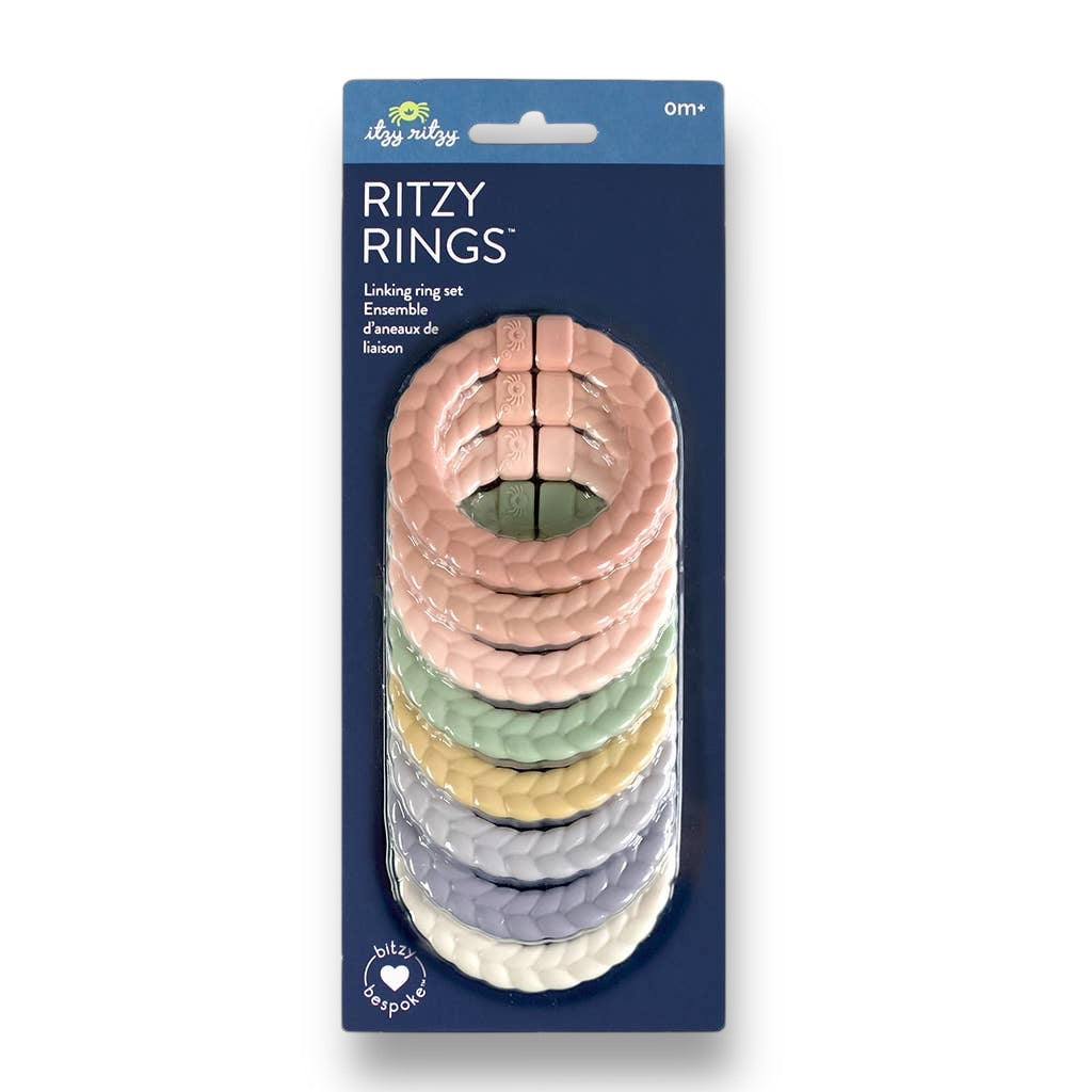 NEW! Itzy Ritzy Braided Rainbow Linking Rings Silicone Teethers