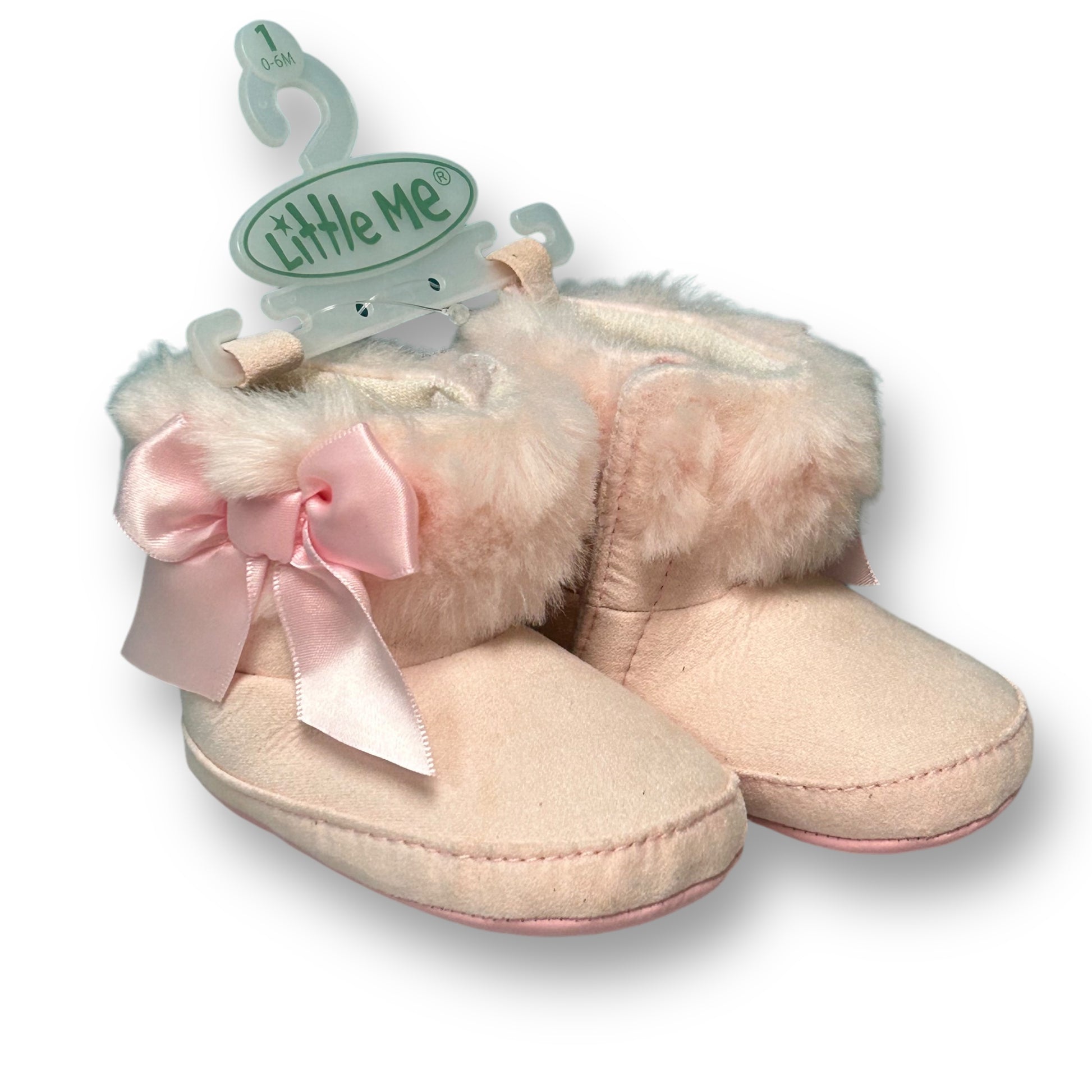 NEW! Little Me Baby Girl Booties 0-6 Months Size 1 Pink Faux Fur Slip On Boots