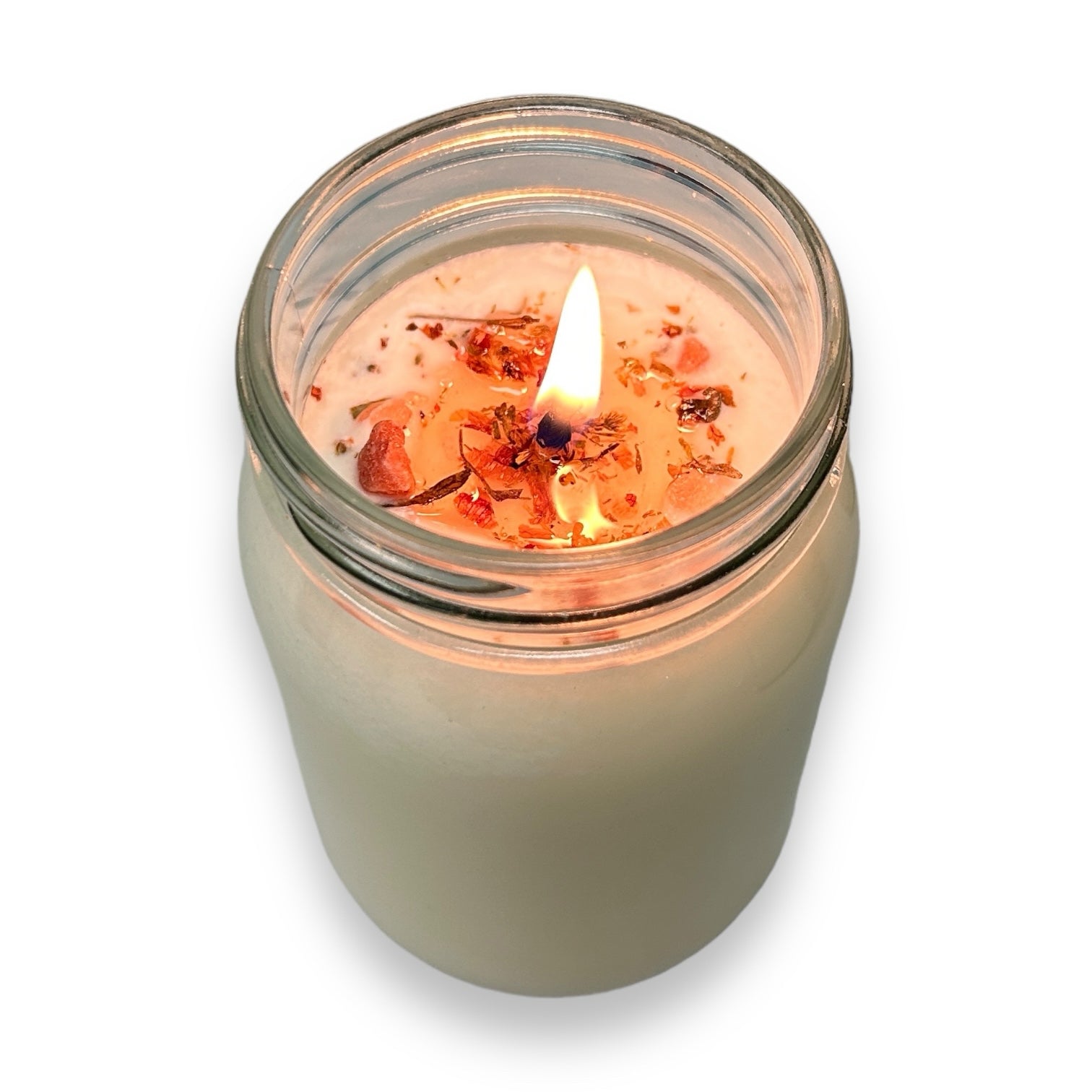NEW! Natural Soy Wax Candle Large 16 oz Rose Purify Calming Herbs & Pink Salt