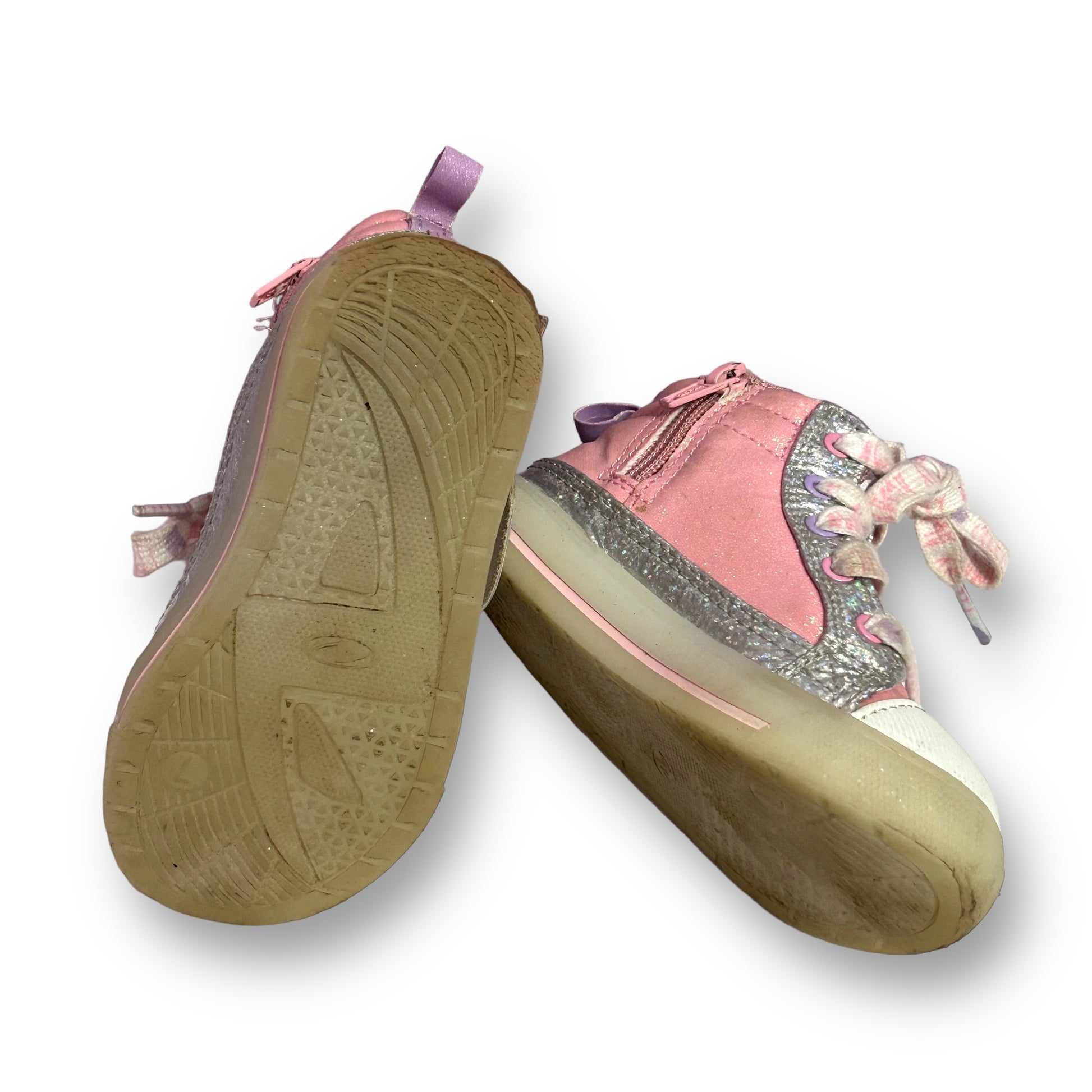 Toddler Girl Light-Up Sneakers Size 7 High Top Zippered Butterfly Tennis Shoes