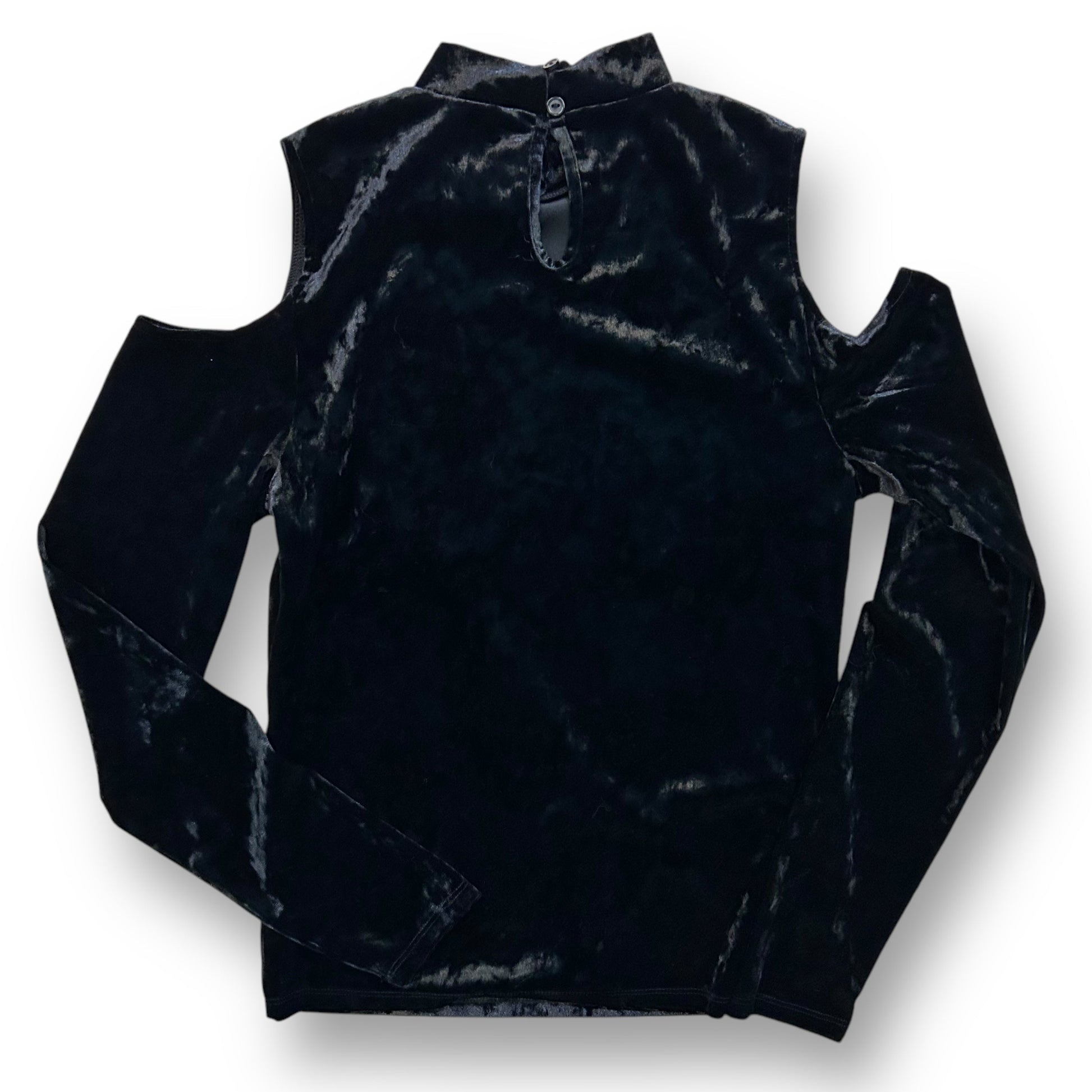 Women's Size XS Black Long Sleeve Shirts Crushed Velvet Cold Shoulder Top