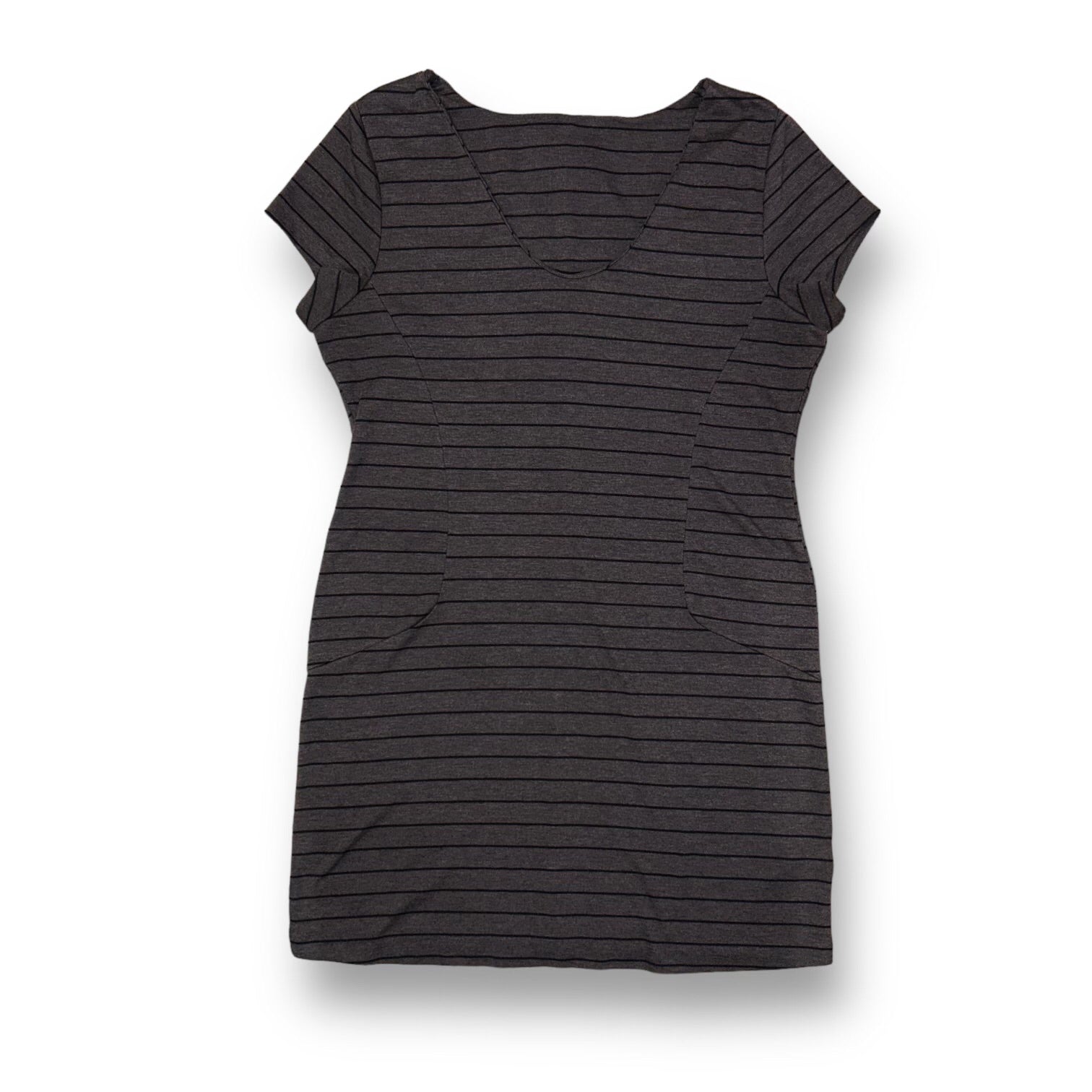Thyme Size Medium Gray Striped Short Sleeve Maternity Dress