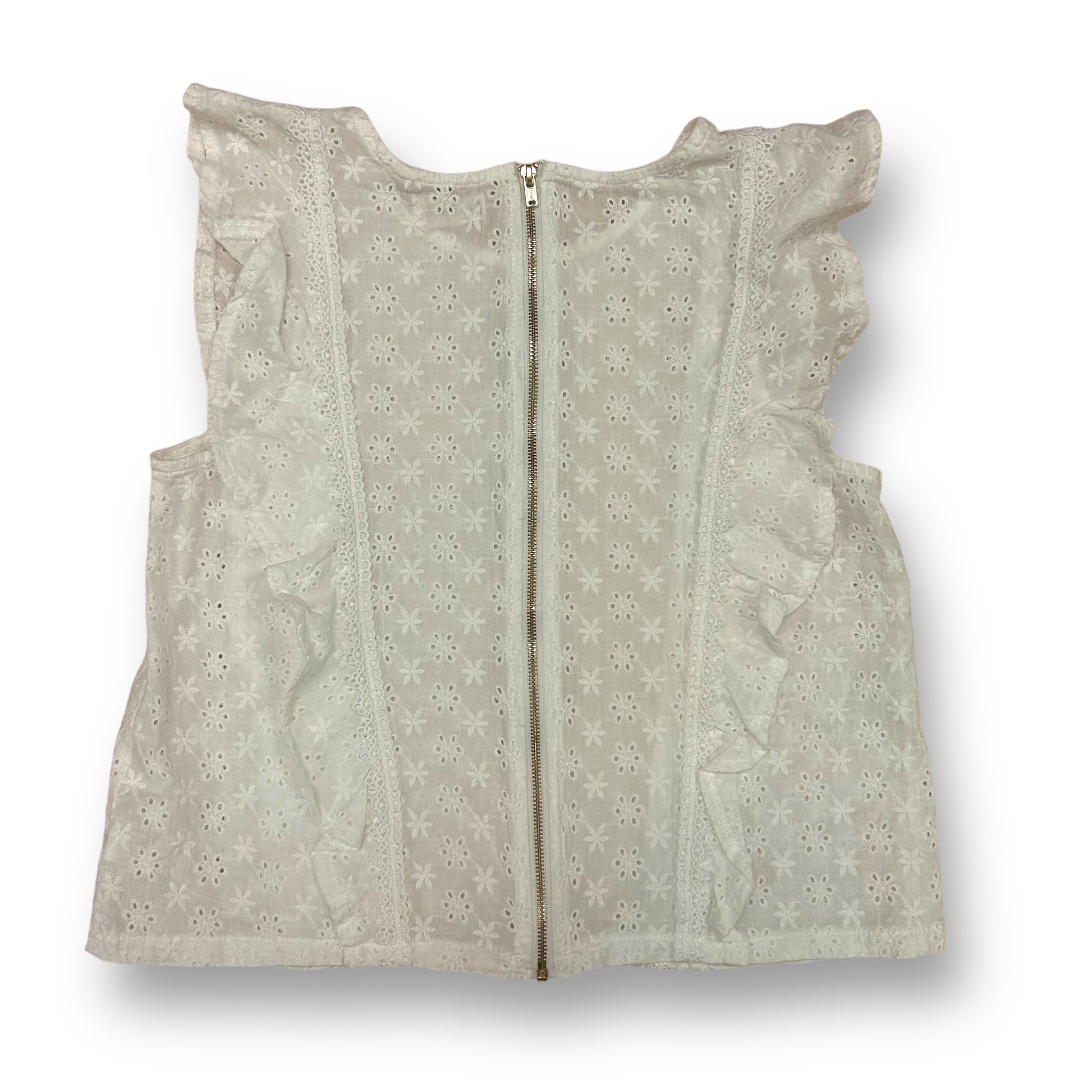 - Kidpik Size 14 White Ruffle Eyelet Short Sleeve Zippered Back Blouse